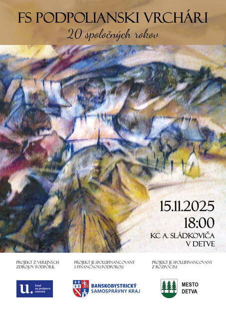 Srdečne vás pozývame na slávnostné folklórne predstavenie pri príležitosti 20. výročia založenia Folklórneho súboru Podpolianski vrchári, ktoré sa uskutoční: