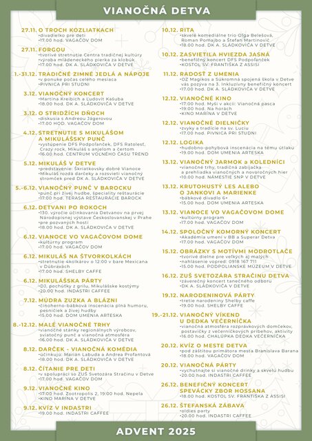 6. 12. o 17:00 hod. – VIANOCE VO VAGAČOVOM DOME - Kultúrny program. Miesto konania: Vagačov dom